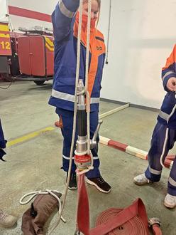 In der darauffolgenden Woche übten sich alle im Umgang mit der Feuerwehrleine in der Knotenkunde. Das Augenmerk lag dabei auf dem sicheren „Einbinden“ von Feuerwehrgeräten u.a. Strahlrohr mit Schlauch. Auch haben sich die Kinder im Rettungsknoten ausprobiert, welcher genutzt wird, um rettende Personen über die Steckleiter aus Gebäuden zu retten.