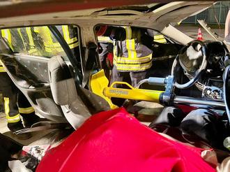 Da diese Maßnahme hier nicht zielführend war, entschieden wir uns für das Strecken der A-Säule. Hierfür wurde der Schweller im vorderen Bereich durchtrennt. Anschließend erfolgte die Erweiterung des Fußraumes mittels Rettungszylinder. Dies war ausreichend, um die Einklemmung im Beinbereich zu beheben und die Person zu retten.