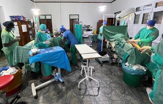 Die Menge der Patienten, die zum Teil aus großen Entfernungen zu Fuß in die Klinik gekommen waren, überwältigte die Ankömmlinge. Gleich am ersten Tag wurden mehrere Kinder entbunden, diverse Brandwunden verarztet und die nächsten Eingriffe geplant.