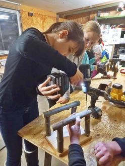Auf dem Betriebsgelände der Firma wurde gesägt und gehämmert, denn selbst ist das „Fräulein“. Zum Abschluss des Projektes konnte jeder ein bisschen mehr handwerkliches Können und natürlich ein Vogelhäuschen mit nach Hause nehmen.