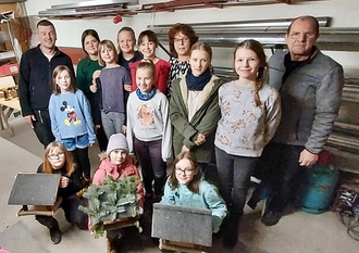 Und so äußerten die Mädchen auch den Wunsch in der Winterzeit für die Vögel ein Futterhäuschen zu bauen. Nach vorheriger Absprache und Planung war es dann im Dezember des letzten Jahres soweit und die Mädchen konnten, unter fachkundiger Anleitung der Dachbau-Firma Schemmel, Futterhäuschen bauen.
