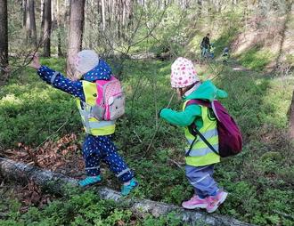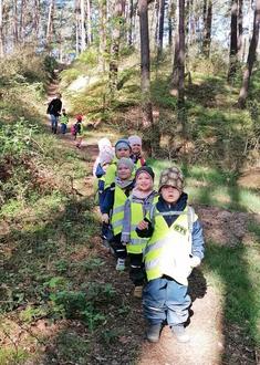 Im April erlebten die Kinder eine abwechslungsreiche Wanderung durch den Wald in Gröden. Durch Wiesen, Wald, bergauf, bergab, bei strahlendem Sonnenschein verlief die Entdeckungstour kreuz und quer durch den Wald. Beim Bekanntmachen von Baumarten, Käfern, Spinnen und dem Sammeln von Moos, Tannenzapfen und Holz wurde den Kindern der Wald vertraut gemacht. Die Neugierde und der Mut reichten sogar aus, um zwei Etagen des Heidebergturms zu besteigen.