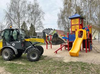 Gleichzeitig hat der Bauhof einige Tonnen gespendeten Sand als Fallschutz um unsere anderen Spielgeräte aufgefüllt.
