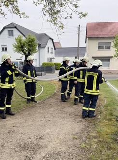 Die Einsatzkräfte probten den Umgang mit den verschiedenen Strahlrohren und das richtige Vorgehen bei Flächen- und Waldbränden.