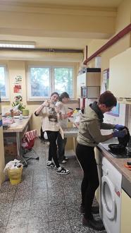 Es wurde gejätet, geharkt, gefegt, die Außentüren wurden geputzt und die Schülerküche erhielt eine Frühjahrskur.