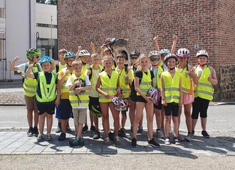 Danach wurde das Erlernte im Mai in die Praxis umgesetzt. Zuerst kontrollierte Herr Wilhelm alle Fahrräder auf Verkehrssicherheit. Nach einer kurzen Einweisung und Streckenbesprechung mit Herrn Bär ging es auf die Straße.