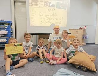 „Die Geschichte vom Löwen, der nicht schreiben konnte“ begeisterte dann die Vorschüler und zeigte, dass Lesen und Schreiben wichtig sind! Der Löwe ist nämlich verliebt und kann der hübschen Löwin keinen Brief schreiben, um es ihr zu sagen. Als er die anderen Dschungelbewohner um Hilfe bittet, schreiben sie die völlig falschen Dinge und der Löwe wird immer trauriger. Doch dann bietet ausgerechnet die Löwin an, ihm Lesen und Schreiben beizubringen. Ein Happy End!