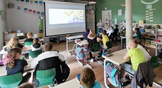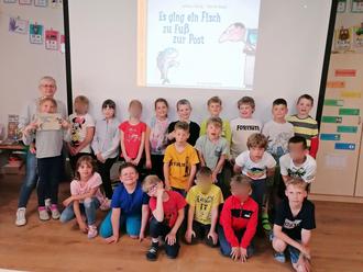 Frau Lode brachte am 2. Juni den Schülerinnen und Schülern der Klassen 2a und 2b der Großkmehlener Grundschule „Am Schloss“ zum Einstieg in das Unterrichtsthema ‚Post‘ dieses wunderbare Bilderbuchkino mit.