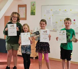 Der beste Leser der Klasse 4 ist Lukas Rothe. Einen Sieg im Doppelpack haben sich Pia Mittag und Thanee Degen aus Klasse 5 geholt; beide haben neben unserer Jury auch Bibliotheksleiterin Frau Lode, Schulleiterin Frau Naumann und Bürgermeister Herrn Terne mit ihrer beeindruckenden Leistung überzeugt.