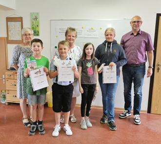 Über die Siegerurkunden und ein Buchgeschenk durften sich Maike Tege (1a) und Mattis Kotte (1b) freuen.
