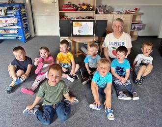 Am 15.06.2023 war Frau Lode wieder mit zwei lustigen Bilderbuchkinos zu Besuch im „Zwergenhaus“. Sie nahm die Kleinen mit in die Geschichte „Kamfu mir helfen?“ und die Gruppe war ganz fasziniert.