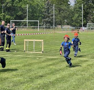 Die Wettkämpfe eröffneten die Kleinsten mit der „Gruppenstafette“, wobei die Mannschaft aus Stolzenhain I die Nase vorn hatte. Bei der „Gruppenstafette“ müssen die 6 Starter Hindernisse durchkriechen, Knoten legen oder stechen, Schläuche mit Verteiler und Strahlrohr kuppeln und Hindernisse mit der Kübelspritze bekämpfen.