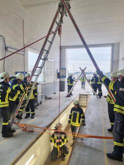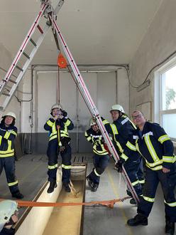 Die Einheit Süd (Wainsdorf & Prösen) traf sich für das Ausbildungsthema „Retten aus Höhen und Tiefen“ im Mai bei der Firma Petschke GmbH Spedition - Transport - KFZ-Service in Prösen.
