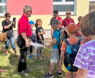 Zum Auftakt spielte der Spielmannszug TV „Deutsche Eiche“ aus Hirschfeld. Die Kinder lernten viele neue Instrumente kennen und probierten sie natürlich auch aus, zum Beispiel die Lyra und das Becken, das machte natürlich sehr viel Spaß.