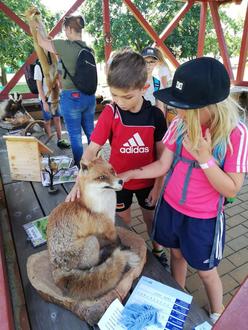 Herr Zeitler und Herr Riedel vom Jägerverein Stolzenhain erklärten den Kindern was alles im Wald so kreucht und fleucht. Natürlich wurden auch die ausgestopften Tiere bestaunt und unter die Lupe genommen. Der Aussichtsturm mit dem Fernglas war natürlich das Highlight.