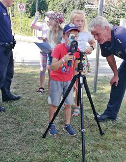 Herr Wilhelm und Herr Bär, zwei Revierpolizisten aus dem Elbe-Elster-Kreis, durften nicht fehlen – sie erklärten den Kindern wie ein Lasergerät funktioniert und die Handhabung. Die Kinder staunten und waren sehr begeistert.