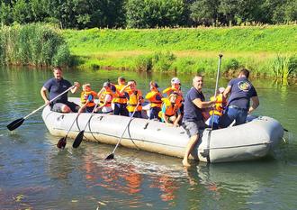 Die Kinder und Jugendlichen aus Stolzenhain und Wainsdorf unternahmen Schlauchboottouren auf der Schwarzen Elster. Danach gab es bei den Jugendfeuerwehren leckere gegrillte Burger zum selber belegen und bei der Kinderfeuerwehr Nudeln mit Tomatensauce.