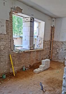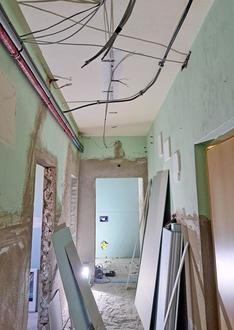 Über die Sommerferien hinweg waren die Gewerke sehr fleißig. Neue Fenster wurden eingesetzt, Türen versetzt und Wände hochgemauert, der Boden mit Estrich ausgeglichen, die Zuleitungen für Strom und Wasser erneuert, die Vorwandelemente für die Toiletten und Waschtische angebracht und alles mit Trockenbauwänden verkleidet. Auch unser Eingangsbereich wurde umgestaltet und erhielt mit einer Rampe einen behindertengerechten Aufgang.