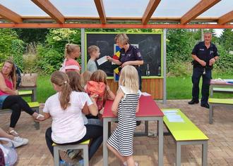 Die Polizei war mit einem Quiz zum Thema Verkehrssicherheit vertreten. Spielerisch lernten die Kinder, worauf sie im Straßenverkehr achten müssen, sei es als Fußgänger oder Radfahrer.