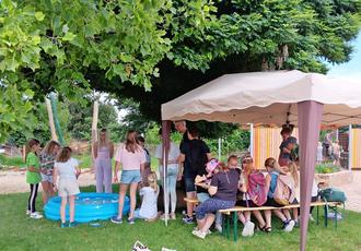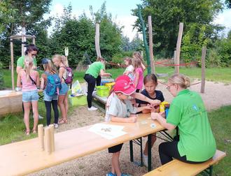 Der Heimatverein Gröden e. V. vermittelte Wissen rund um das Leben früherer Generationen. Die Kinder konnten ausprobieren, wie man früher mit dem Waschbrett Wäsche wusch, erfuhren Wissenswertes über Getreidesorten und lieferten sich spannende Wettläufe beim Milchkannenrennen.