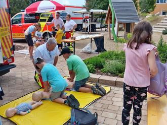 Am Stand des DeutschenRotenKreuzes(DRK) konnten sich die Kinder in der Ersten Hilfe ausprobieren: Pflaster und Verbände wurden fachgerecht angelegt, und auch die Herzdruckmassage durfte an Übungspuppen geübt werden – eine Erfahrung, die spielerisch an wichtige Notfallmaßnahmen heranführt.