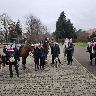 Erstmalig fand der traditionelle Elstertrebnitzer Weihnachtsmarkt am 10.12.2023 auf dem Sportplatz in Elstertrebnitz statt. Bereits vom Eingang aus war der große leuchtende Stern auf der Bühne zu sehen. Ebenso funkelte der gesamte Markt mit seinen Verkaufsbuden im Lichterschein. Zahlreiche Besucher ließen sich den Elstertrebnitzer Weihnachtsmarkt nicht entgehen. Es frohlockten viele Leckereien wie glasierte Äpfel, Stollen, „Elstertrebnitzer Krapfen“ und natürlich auch Deftiges vom Grill. Daneben hatte man Gelegenheit, noch kleine Geschenke und einen Weihnachtsbaum zu kaufen. Ab 15:00 Uhr hieß es „Vorhang auf“ für die Kinder und Erzieherinnen der Kita Knirpsenland. Mit einem fröhlichen Weihnachtstanz der Käfergruppe startete das überaus tolle Programm. Danach folgte das Märchen Schneewittchen. Hier zeigten die Kinder der Igel- und Schlaufuchsgruppe ihr schauspielerisches Können. Musikalische Unterstützung erhielt der Weihnachtsmarkt von Mario Gottschalk. Zur großen Überraschung für die Kinder kam direkt nach dem Showprogramm der Weihnachtsmann vorbei, aber auf Grund Mangels Schnees nicht auf einem Schlitten, sondern im Anhänger einer festlich geschmückten Lanz. Viele mutige Kinder trauten sich auf die Bühne, um die kleinen Geschenke entgegen zu nehmen. Bis zum Einbruch der Dunkelheit genossen viele Besucher bei Glühwein und Krapfen das Miteinander. Am Ende meinte es der Wettergott doch gut mit uns.