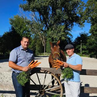 Als Dankeschön für die Unterstützung und für die zahlreichen glücklichen Kinderaugen überbrachte Herr Bürgermeister Zühlke der OLD MILL RANCH zwei Kisten frische Möhren vom Gartenbau Schladitz.