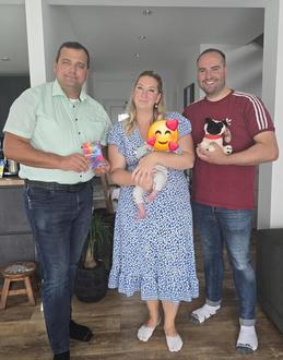 Der Bürgermeister David Zühlke begrüßte persönlich den neuen Erdenbürger und überbrachte der jungen Familie ein kleines Willkommensgeschenk. Er wünscht Ihnen alles erdenklich Gute und eine schöne gemeinsame Zeit.