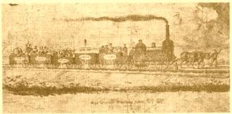 In der damaligen Zeit kam in Leipzig jenes Spottbild heraus, auf der die neue geplante Eisenbahn dargestellt wurde. Wir geben die Zeichnung wieder, weil sie zugleich durch ihre bildliche Darstellung der Spitznamen, die die Städte im Volksmund führen, volkskundlich wertvoll ist.