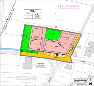 Der Bebauungsplan schließt das Flurstück Trautzschen 173/a vollständig sowie die Flurstücke 163/a, 172, 173, 174 und 175 anteilig ein.