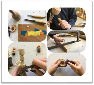 Unter dem Motto Alles rund ums Holz beginnt das Projekt mit einer kurzen Einleitung einmal zum Werkzeug wie Schnitzmesser, Säge, Hammer ... und zum Werkstoff Holz. Die Teilnehmer können sich erste Anregungen durch verschiedene Beispiele aus Holz holen. Unter Aufsicht von Bildhauerin Jiang Bian-Harbort kann sich jeder Teilnehmer mit Schnitzmesser und Säge am Werk ausprobieren sowie unter Anleitung individuell an seinem Holzstück arbeiten.