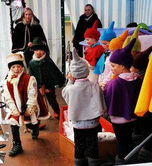 Zum Elstertrebnitzer Weihnachtsmarkt am 10.12.2023 spielten unsere Igel- und Schlaufuchskinder das Märchen Schneewittchen und die Sieben Zwerge.