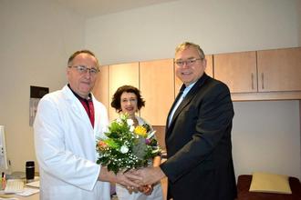 Unter vielen Gratulanten zur Praxisübergabe war auch Bürgermeister Frank Rösel erschienen. Er dankte Dipl.-med. Gruhle für seine jahrelange Tätigkeit zum Wohle seiner Patienten und hieß Frau Dr. Meier herzlich in Pegau willkommen.