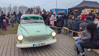 Musikalische Unterstützung durch das Bernhardtiner Akkordeonorchester sorgte für die passende Weihnachtsstimmung, während die jüngsten Gäste beim Basteln, Kinderschminken oder Reiten auf ihre Kosten kamen. Ein weiterer Höhepunkt war der Besuch des Weihnachtsmannes, der stilecht mit einem Trabi vorfuhr und für leuchtende Kinderaugen sorgte.