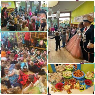 Zur großen Faschingssause trafen sich alle Gruppen der Kita im Foyer. Wir bestaunten die vielen schönen Kostüme, tanzten zu lustiger Kinderdiscomusik und hatten viel Spaß beim tanzen vom Hoogy-Boogy-Tanz und der Polonaise durch das ganze Haus. Während der großen Sause stärkten sich alle Knirpse mit roter und grüner Brause sowie leckeren Würstchen und zahlreichen süßen Leckereien. Die Kindergartenkinder nutzen noch die Gelegenheit in ihren Gruppenräumen für Partyspiele wie Luftballontanz, Stuhlpolonaise, Brezel schnappen und weiteren lustigen Spielen.
