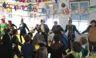 Natürlich darf in der 5. Jahreszeit der Fasching nicht fehlen und mit einem Besuch des Prinzenpaares Groß und Klein des Pegauer Karneval-Klubs startete unsere Faschingsparty im Hort. Die Kinder waren toll verkleidet und geschminkt oder maskiert. Unseren Kinderhort hatten wir mit selbst gebastelten Girlanden geschmückt und bei toller Musik mit DJ Freyer war die Stimmung riesig.