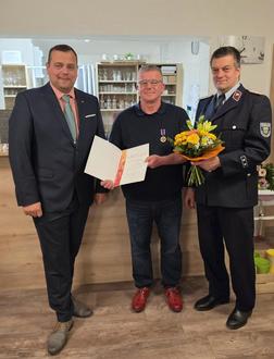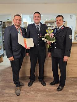 Für langjährigen Dienst wurde Kamerad Tino Seyer für 40 Jahre aktiven Feuerwehrdienst ausgezeichnet. Eine besondere Ehrung erhielt Kamerad Bastian Fromm, dem für sein Engagement das Deutsche Feuerwehr-Ehrenkreuz in Bronze verliehen wurde.