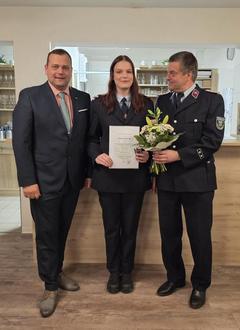 Diana Despang und Jennifer Dörling wurden zur Feuerwehrfrau befördert, Sandra Despang zur Oberfeuerwehrfrau. Der Jugendwart Fabian Mocker wurde zum Löschmeister ernannt.