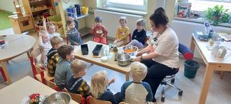 Immer wieder leuchten die Augen beim Töpfern von Osterüberraschungen, beim Wandertag zum Spielplatz erlebten und erkundeten wir unser schönes Dorf Elstertrebnitz und auch das Backen von Möhrenkuchen bereitete ganz viel Spaß. Er schmeckte uns köstlich!