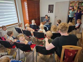 Am 23.05.2023 besuchte die Käfergruppe der Kita Knirpsenland die Lesestube der Gemeinde Elstertrebnitz. Mit großer Begeisterung lauschten die Kinder unserer Bücherfee Ellen Bader beim Vorlesen der Geschichte des Grüffelo. Anschließend durften die Kinder selbst noch ein wenig in der Bücherei stöbern und Bücher anschauen.
