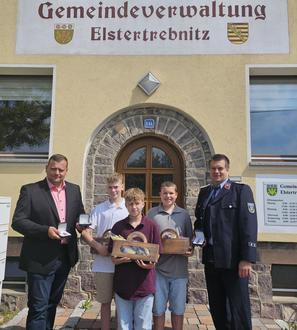 Am 07.06.2024 nutzen Herrn Bürgermeister David Zühlke und der Wehrleiter Herr Despang die Gelegenheit sich mit einem kleinen Präsent bei den 3 Jugendlichen für Ihr wachsames Auge und Engagement zu bedanken. Durch ihr vorbildliches Handeln konnte am 06.06.2024 ein schlimmer Brand verhindert werden.