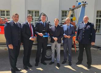 Zum Helferempfang des Sächsischen Staatministeriums des Innern am 16.06.2024 auf Schloss Wackerbarth begrüßte Innenminister Armin Schuster mehr als 100 ehrenamtliche Helferinnen und Helfer aus dem Katastrophenschutz und den Rettungsdiensten. In diesem Rahmen wurde Bastian Fromm vom CBRN-Erkundungszug mit dem Helfer-Ehrenkreuz in Form des Steckkreuz in Silber ausgezeichnet.