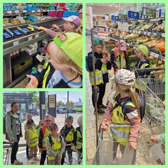 Dritte Station war dann Lidl und Bäckerei Hennig. Auf dem Weg dorthin ging die Sirene in Höhe Feuerwehr, so dass wir live dabei waren und beobachten konnten, wie schnell die Feuerwehrmänner angerannt kamen. Doch nach wenigen Minuten wurde der Einsatz abgebrochen und wir hatten dabei das Glück, die Feuerwehrstation ganz spontan zu besichtigen. An dieser Stelle möchten wir uns für diese spontane Führung bei der FFW Pegau bedanken. Insbesondere vielen Dank an Herrn Ronny Wiesner und Roland Lorenz. Auf dem weiteren Weg entdeckten die Schlaufüchse viele verschiedene Verkehrszeichen, die sie bereits in der Schulvorbereitung kennengelernt haben. Mit einem Budget von € 2,00 konnten die Kinder selbstständig einkaufen gehen. Dabei merkten sie, dass das selbstständige Einkaufen doch gar nicht so einfach ist.