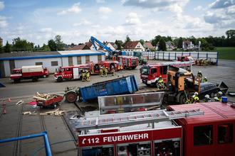 Am 24.05.2025 fand auf dem Betriebsgelände der Firma Schrott Wetzel eine groß angelegte Einsatzübung statt. Insgesamt 71 Einsatzkräfte sowie zahlreiche Helfer und 12 Einsatzfahrzeuge waren an dem aufwendig inszenierten Szenario beteiligt. Ziel der Übung war es, die Zusammenarbeit und Koordination der örtlichen Feuerwehren und Spezialkräfte unter realitätsnahen Bedingungen zu trainieren.