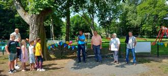 Am Sonnabend, 17. Juni 2023, war es so weit: Um 11.00 Uhr haben der Bürgermeister, Herr Sehnert, die Ortsbürgermeisterin, Frau Bastek und weitere Mitglieder des Ortschaftsrates Welbsleben die offizielle Einweihung des neuen Spielplatzes im OT Welbsleben an der Einetalhalle vorgenommen.