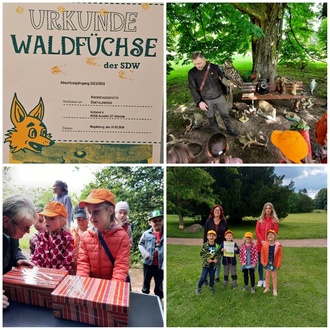 In der Kita gab es einen aufregenden Abschluss der Waldfüchse im Landschaftspark Degnershausen. Über einen spannenden Parcours aus vielfältigen Stationen rund um den Wald absolvierten die Schulkinder 2024 am 13.06.2024 ihre Waldfuchsprüfung. Die Kinder haben ihr Wissen über die Laub- und Nadelbäume und über die Tiere des Waldes unter Beweis gestellt.