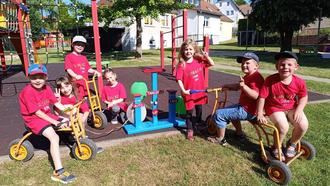 Am Donnerstag stand die Verkehrssicherheit im Mittelpunkt. Die Kinder brachten ihre Fahrräder und Laufräder mit und lernten viel über sicheres Verhalten im Straßenverkehr. Mit einem Verkehrsschilder-Memory und einem Parcours wurde das Gelernte spielerisch vertieft.