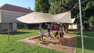 Im September war es endlich so weit: unsere Kinder konnten nach knapp 2-jähriger Planungs- und Bauzeit ihren neu gestalteten Sandspielbereich in Besitz nehmen.