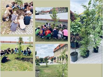Im Rahmen einer „Baum-Pflanz-Challenge“ übernahm jede Klasse von der 1. bis zur 4. Jahrgangsstufe Verantwortung für „ihren“ Baum. Mit viel Begeisterung, tatkräftiger Unterstützung der Lehrkräfte und fleißigen Händen entstanden auf dem Schulhof vier neue Schattenspender, die in den kommenden Jahren wachsen und gedeihen dürfen.