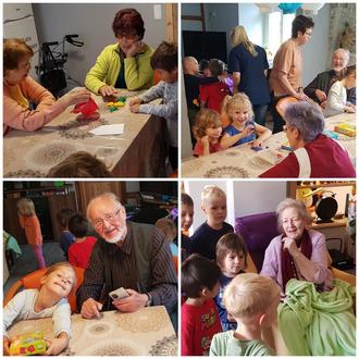 Im Frühjahr dieses Jahres starteten wir gemeinsam mit dem Seniorenheim am „Mühlenhof“ ein Projekt. Einmal im Monat besuchen die Kinder der Kita „Einetalzwerge“ Alterode die Heimbewohner im „Mühlenhof“ zu einer Spielstunde. Bewohner und Kinder haben dabei eine Menge Spaß. Neben Gesellschaftsspielen wie „Memory“, „Mensch-ärgere-dich-nicht“, Zuordnungs- und Geschicklichkeitsspielen wird gesungen, erzählt und gelacht. Von diesem generationsübergreifenden Miteinander profitieren alle. Die Heimbewohner erleben viel Freude, sie trainieren ihr Gehirn und werden aktiver. Auch für die Kinder sind die regelmäßigen Besuche interessant und bereiten ihnen Spaß. Durch ihre unbekümmerte und aufgeweckte Art entwickeln die Kinder recht schnell Zutrauen und lernen, dass ältere Menschen krank sein können, nicht mehr so gut laufen bzw. sich bewegen können, Dinge schnell vergessen und was ganz wichtig ist, dass man alten und kranken Menschen mit Achtung und Respekt begegnet. Dadurch werden auch Rücksichtnahme und Hilfsbereitschaft bei den Kindern gefördert. Die Lebensfreude der Kinder wirkt auf die Bewohner geradezu ansteckend, zwischen den Generationen sind sogar Freundschaften entstanden.
